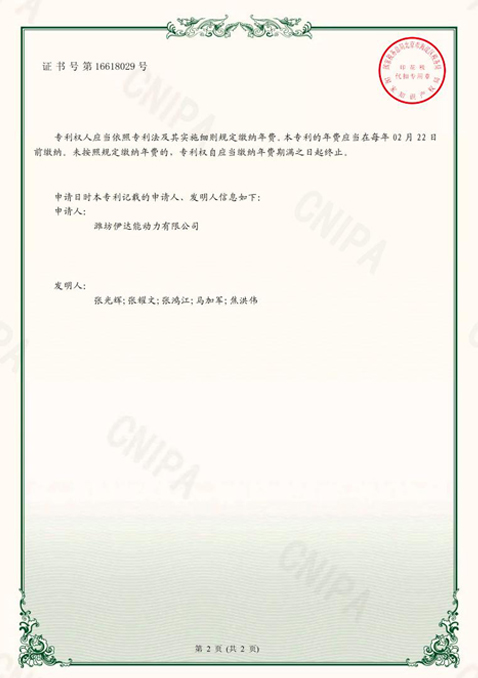 伊達能2022203540660一種天然氣發電機組余熱利用裝置-實用新型專利證書